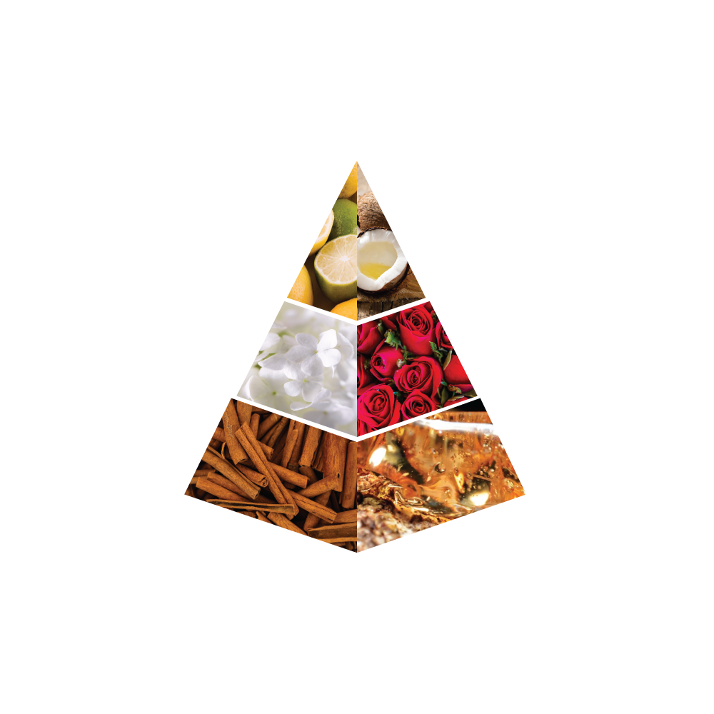 The base is warm and sensual, with deep notes of musk, vanilla, sandalwood, and ambergris, creating a rich, comforting finish. A perfect balance of freshness, florals, and warmth.